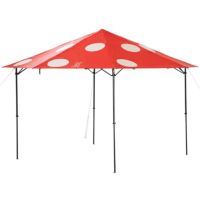 私が買ってすぐセールになって、2つ目買おうかと悩んだくらい気にってます! イベント出店するときのタープにすると、いろんな人から、 『かわいいテントですねー!』 と、商品ではなく、テープをほめられました。 庭でも使ってます。 小5の息子と二人でも設営や片付けができるところが本当気に入ってます!